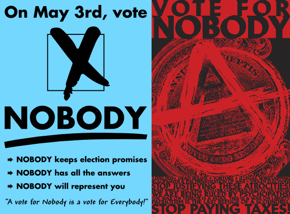 Webmasters note: I actually think the libertarian case against voting is overstated (for my reasons, see here and here). But since I also think that the anti-voting arguments are generally far closer to the truth than the pro-voting arguments while receiving far less attention, I put this page together. The emphasis of anarchist action should be on education, direct action, and building alternative institutions, rather than electoral politics.